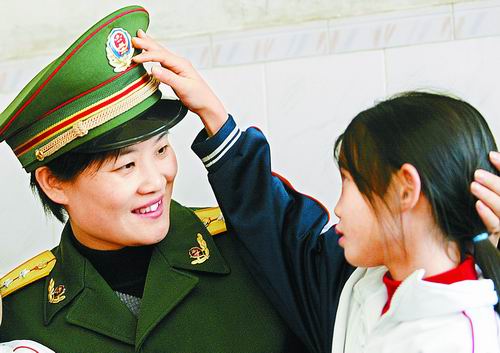 邊防官兵看望貧困學童