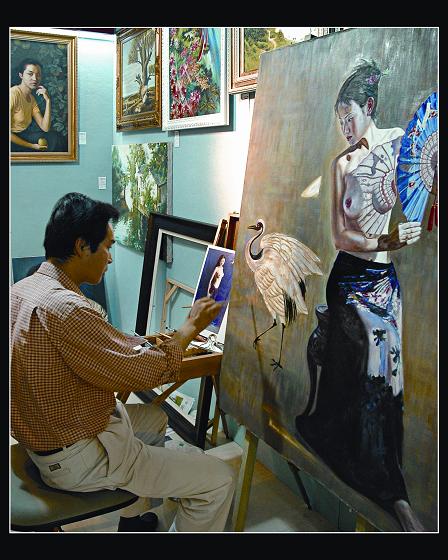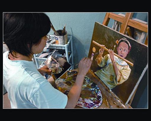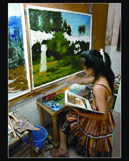 大芬油畫村的畫師在精心作畫組照-黃佩儀