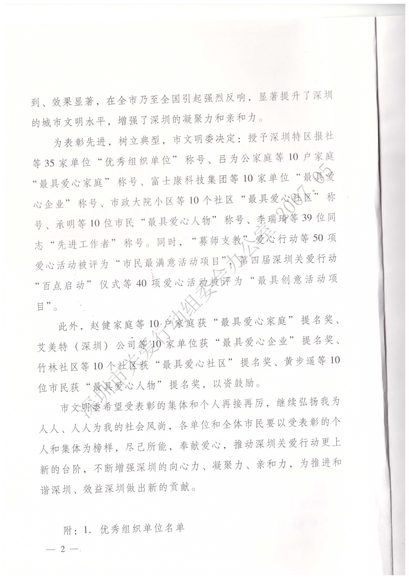 深圳市精神文明建設委員會關于表彰第四屆深圳關愛行動先進集體和先進個人的決定