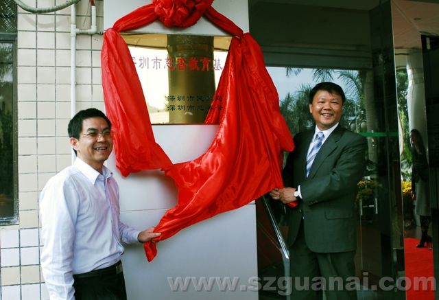 2007年3月14日市民政局局長、市慈善會常務副會長劉潤華(右)等貪領導為慈善教育基地揭牌(陳錦輝攝)
