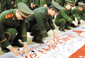 邊防官兵踴躍簽名獻愛心?! ”緢笥浾?許業周 攝 |