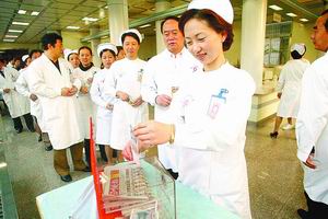 為了讓大家更好地了解這項行動,楊佳勇將刊有報道的《深圳晚報》舉起,在醫護人員面前展開,一邊動員,一邊告訴大家這項行動的意義。在楊佳勇帶領下,白衣天使們紛紛奉獻愛心,十幾分鐘時間,募捐箱中就有近2000元捐款。南山醫院手外科主任王利說:“每一個醫生都有責任關愛病人,這些在生死邊緣的孩子更應得到挽留。希望通過這次助燃行動能夠號召更多人捐獻,幫助這些孩子延長生命。”