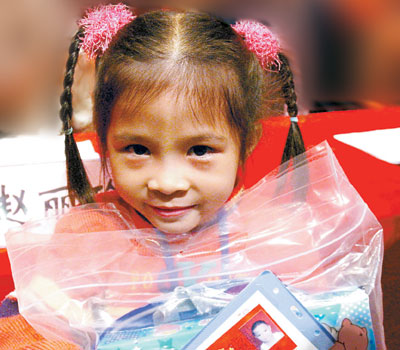 地貧兒的“親人們”從四面八方趕來。認親家庭的“爸爸”“媽媽”們拉著地貧小朋友們的手問長問短,感動的淚水充盈著他們的眼睛,愛如涓涓細流無聲流淌在每個人的心中。香蜜湖獅子會會長王麗芳、市民陳小姐、朱太太、顧小姐四個“媽媽”圍著“認捐”的地貧兒袁嘉怡噓寒問暖。“媽媽”們還帶來了5個如花似玉的“姐姐”,8歲的“小姐姐”王靖君看著“妹妹”袁嘉怡非常憐愛,她說,以后我有好玩好吃的,都會想著她。我的零用錢也要分給她。富士康集團的員工們和認親的地貧小朋友共同植下了愛心樹,而沃爾瑪公司給地貧孩子們帶來了書包、文具等愛心禮物。