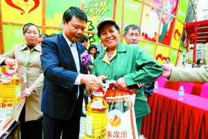 2008年1月16日,低保戶喜領(lǐng)慰問品。 本報記者 陳發(fā)清攝