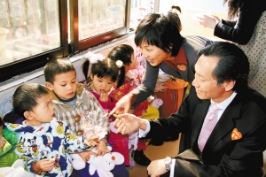 日前,深圳東華假日酒店員工來到深圳社會福利中心的孤兒院及頤養院,送去新春祝福并送上禮物和歌舞。孩子們和老人們的臉上都綻放出了歡快的笑容。通訊員王敏 本報記者 蔡良煥 攝