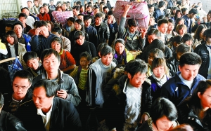 春節假期結束后,大量勞務工返回深圳,使得鐵路抵深客流持續高漲。連日來深圳兩大火車站都是到站人流洶涌,平均每天迎來逾13萬旅客,現場可見其中大部分是勞務工。一邊是鐵路客流保持高峰不見回落,另一邊深圳服務勞務工的“春風行動”免費招聘專場比往年提前一周舉行仍意外火爆,金融危機背景下,提早來到鵬城的勞務工兄弟姐妹需要我們送去更多溫暖。