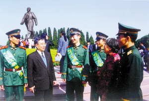 與武警官兵在蓮花山開展關愛行動。