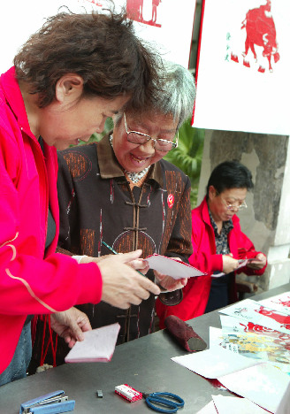 兩個(gè)月前,屈阿姨因心臟問(wèn)題住進(jìn)了醫(yī)院,這才出院一個(gè)月,屈阿姨就前來(lái)參加“鄰里節(jié)”活動(dòng),之前大家伙都勸她在家好好休息,可她卻說(shuō):“學(xué)剪紙對(duì)和諧鄰里關(guān)系很有幫助,我一定要講講我的感受。”