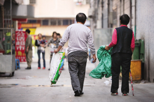 老錢經(jīng)常和妻子一起外出拾荒。
