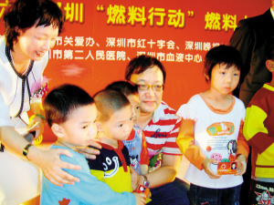 據了解,地貧兒持“燃料卡”,每年可享受12次免費輸血。本次活動中,52名地貧兒喜獲生命燃料,其中大多數是常住深圳的外來建設者的孩子。由于去年資助的69名地貧兒中,有43名孩子享受市政府推出的少兒醫保政策,其住院輸血都能報銷八成的費用,因此今年這些家庭主動讓出愛心資助的名額,將“燃料卡”讓給有需要的地貧兒家庭。