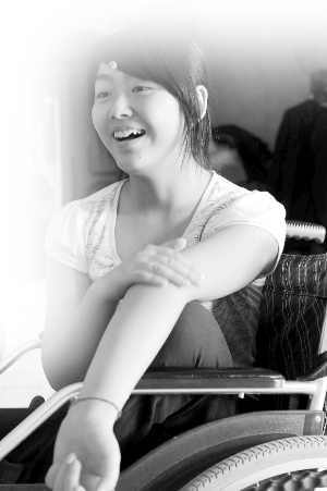 ??? 輪椅上的靜雯依然有著燦爛的笑容。