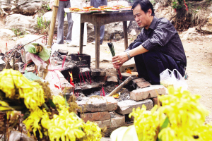 記者于是前往景家山。上山的一條水泥路上,來自外地的憑吊者絡繹不絕。半山的遙望處,山坡崎嶇,有群眾在這里設立了幾個簡單的祭祀臺。祭祀臺前,自發前來的憑吊者或點香拜祭,或久久凝望默哀肅立。時近中午,一群憑吊者顯得非常特別,看上去,他們年齡在50歲左右,個個表情凝重,動情之處潸然淚下。原來,這70多人的憑吊團隊是初中74屆、高中76屆的北川中學的畢業生,現在外地工作和生活。他們告訴記者,估計周年祭的時候人多不方便,于是就提前前來拜祭。
