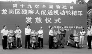 龍崗區(qū)給殘疾人配送機動輪椅車方便殘疾人出行。