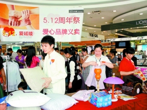 在為災(zāi)區(qū)兒童圓夢(mèng)的同時(shí),天虹還在其深南天虹、天虹購(gòu)物廣場(chǎng)、南山常興天虹、國(guó)貿(mào)天虹、寶安創(chuàng)業(yè)天虹、布吉天虹多個(gè)商場(chǎng)開展義賣、募捐活動(dòng)。憑借其分店多、渠道多的優(yōu)勢(shì),在更廣的范圍內(nèi)發(fā)動(dòng)深圳人為災(zāi)區(qū)人民奉獻(xiàn)愛心。義賣活動(dòng)得到了舒雅、AO2、杰西、季候風(fēng)、臣楓、陽(yáng)光鼠、可可鴨等知名品牌的大力支持。整個(gè)義賣募捐活動(dòng)共籌款13.4萬(wàn)元,接收捐贈(zèng)物資2000余件。其他天虹分店也開展了不同形式的活動(dòng),積極為災(zāi)區(qū)重建籌款。龍華天虹、松崗天虹等商場(chǎng)員工紛紛解囊,為災(zāi)區(qū)獻(xiàn)愛心;布吉天虹的愛心顧客甘女士更為孩子們捐贈(zèng)了116個(gè)新書包;寶安前進(jìn)天虹、寶安創(chuàng)業(yè)天虹、沙井天虹、松崗天虹在5月12日當(dāng)天還作為“愛心傳遞站”積極配合寶安日?qǐng)?bào)和寶安區(qū)慈善會(huì)聯(lián)合舉辦的大型賑災(zāi)活動(dòng),積極籌款……