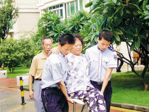 居住在蓮花二村13棟的殘疾人付大爺腿腳不好,進出不方便,平時很少下樓。得知這一情況,小區保安員當起了付大爺的“輪椅”,背他上下樓,成了社區感人的一道愛心風景線。