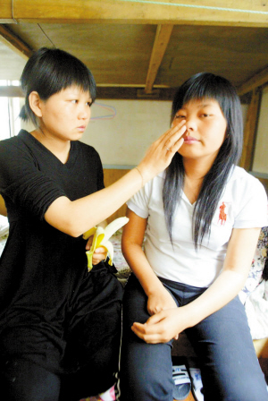 姐姐安慰妹妹。