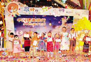 在剛過(guò)去的六一兒童節(jié),深圳建行還聯(lián)合深圳市紅十字會(huì)舉辦了少兒公益才藝秀,讓孩子度過(guò)了一個(gè)有意義的兒童節(jié)。孩子們通過(guò)精彩的歌舞、樂(lè)器、語(yǔ)言、書(shū)畫(huà)類的才藝表演,為汶川兒童度過(guò)一個(gè)快樂(lè)的六一兒童節(jié)籌款籌物,共籌得款項(xiàng)達(dá)23萬(wàn)元。其中,在孩子們的書(shū)畫(huà)作品拍賣環(huán)節(jié),現(xiàn)場(chǎng)籌得款項(xiàng)近萬(wàn)元。建行組織孩子們用這樣的方式,送給災(zāi)區(qū)小朋友一份“最好的六一禮物”,同時(shí)也讓孩子自己獲得了一份“最好的六一禮物”。