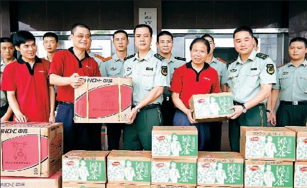 ??? 本網(wǎng)訊?? 在“八一”建軍節(jié)即將到來之際,懷揣對邊防官兵的深情厚誼,日前,深圳市中諾電子有限公司來到深圳特檢站同樂分站,為堅守崗位的官兵送上100箱清涼飲品和一批電話機(上圖)。