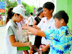 (本網訊)昨天(2日)下午,在羅湖區金廣華廣場上,義工們正在為貴州貧困山區募捐希望小學,市民們踴躍捐款。(楊建 攝)