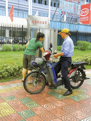 王先生介紹說,他在寶安生活多年。從2003年他就注意到,每年夏天,在107國道固戍公交站后面(往市區方向)出現了一個免費涼茶供應點,至今已經堅持了6年。