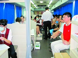 由海山義工與深圳市血液中心聯(lián)合舉辦的義務(wù)獻(xiàn)血活動(dòng)在明斯克航母廣場舉行,贏得不少贊許,并吸引了不少市民和游客參加。(記者 艾建琪 通訊員 袁小娟 攝)