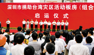 “災難面前,兩岸同胞再一次譜寫了情同手足、風雨同舟,共同抵抗災害的動人篇章。希望這批活動板房在送給臺灣同胞物質上的資助的同時,更能帶給他們戰勝災害的信心。”鄭立中說。李意珍代表市委市政府致辭時表示,目前深圳社會各界已經行動起來,正積極通過各種渠道捐款捐物,表達愛心。