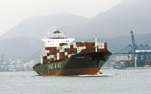滿載活動板房的陽明溫哥華號貨輪起航。