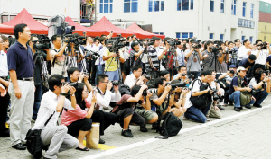 中外媒體高度關(guān)注此次捐助板房啟運(yùn)儀式。