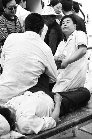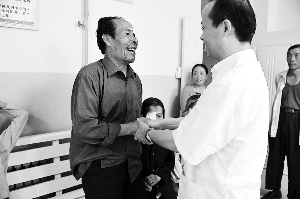 針灸推拿博士鮑圣涌正在為群眾治療。