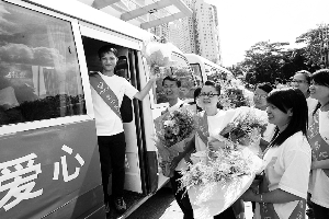 在出發(fā)儀式即將開始的時(shí)刻,深圳關(guān)愛辦主任、深圳報(bào)業(yè)集團(tuán)黨組書記、社長黃揚(yáng)略叫住了正在忙碌地為支教老師服務(wù)的孫影,“孫影,你過來一下?!秉S社長隨即向深圳市委常委、市委宣傳部部長王京生介紹說,“這是多次參加支教的老師,也是這一屆的愛心人物,她曾經(jīng)只身多次到貴州支教,很了不起?,F(xiàn)在,她已經(jīng)成為市關(guān)愛辦的工作人員?!?/p>