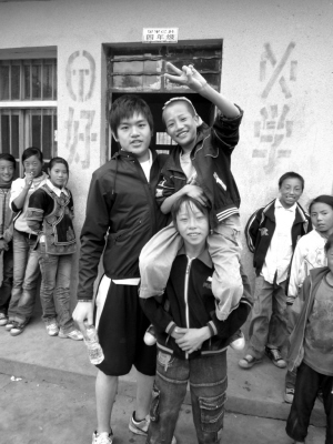 剛到的那天,在小學廢棄的球場里,他們和十幾個小學生打籃球。“我們融洽無間,玩得很開心,但到晚飯時,我們就被分開了,鄉里殺了一頭豬給我們吃,而我卻看到剛剛跟我們一起玩的那些孩子,他們吃的是土豆蘸辣椒,喝的是連鹽都沒有的野菜湯……”