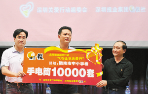 晶報讀者捐贈的手電筒交到隴南市教育局相關(guān)負(fù)責(zé)人手中。