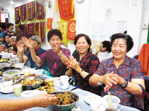 昨天,在蓮花北村的一間房子里,上百位老人快樂相聚。