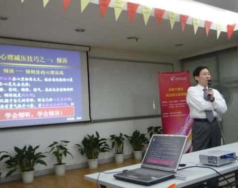 ?? 隨著生活節(jié)奏的日益加快,人們承受的心理壓力越來越大,幸福感越來越少。2009年3月17日,在達(dá)實(shí)公司成立14周年的日子里,我們感恩員工,送去關(guān)愛,特別邀請由市文明辦、市關(guān)愛辦和市衛(wèi)生局等單位主辦的深圳“心理關(guān)愛大篷車”開進(jìn)達(dá)實(shí),為員工做一次心理減壓的公益講座,本次公益講座的內(nèi)容是由劉鐵榜教授就如何應(yīng)對、疏解在日常工作、生活中遇到的各種精神壓力對達(dá)實(shí)的員工進(jìn)行支招,希望通過講座,可以讓您的精神得到放松,思想得到梳理,調(diào)理身心,快樂生活!