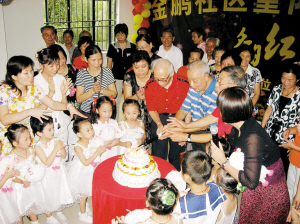 羅湖區(qū)福利中心目前生活著260位孤寡老人,其中有4位百歲老人,他們?cè)谶@里受到了很好的照顧,生活十分幸福。區(qū)領(lǐng)導(dǎo)給老人們送上鮮花、慰問(wèn)金和慰問(wèn)品,并叮囑工作人員一定要照顧好,要把老人當(dāng)作自己的父母來(lái)對(duì)待。80歲的彭輝霞老人情不自禁地唱起了《沒(méi)有共產(chǎn)黨,就沒(méi)有新中國(guó)》,贏得了在場(chǎng)人員熱烈掌聲。