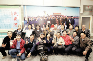 在深圳市血液中心的捐血大廳里,有一張大照片,這是當(dāng)年首批獲得國(guó)家無(wú)償獻(xiàn)血金杯獎(jiǎng)的27位獻(xiàn)血者在天安門前的合影。10年過(guò)去了,這些老朋友們?cè)俅蜗嗑郏_心地在這張寶貴的歷史照片前再次合影。