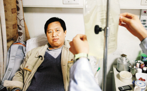 正當李汝勇在義工事業中大展拳腳的時候,噩運不期而至。2005年,他被 診斷為慢性腎功能不全尿毒癥,雙腎完全萎縮,醫生當即為他做了腹部透析管植入手術。從此,他每天靠透析維持生命。無論上班還是參加義工活動,他的背包里隨時裝著透析藥水,每隔六個小時必須洗一次腎。“一袋水重4.5斤,有時候出門時間長,要背兩袋。”李汝勇說。