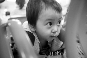 在醫院走廊里候診時,小俊豪情緒很好,不時跟姑姑、奶奶玩耍,時不時露出笑容。但從走進診室的那一刻起,他就沉默不語了。年僅3歲的他似乎明白將要發生的一切,他獨自坐在椅子上把頭埋得很低。就診時,小俊豪又有點發熱、咳嗽,鑒于他病情復雜,醫生優先將其收治入院。