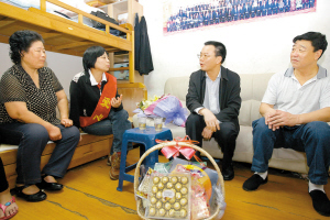 上午10時,市關(guān)愛辦主任、深圳報業(yè)集團(tuán)黨組書記、社長黃揚(yáng)略與愛心大使李俊達(dá)等拎著水果籃、鮮花,首先來到位于蓮花北村的柳獻(xiàn)共家。柳獻(xiàn)共1998年在趕赴抗洪救災(zāi)第一線途中殉職,被追授為“白求恩式醫(yī)務(wù)工作者”。“去年我來看過你,現(xiàn)在身體還好嗎,有什么困難?”“謝謝關(guān)心,目前就是小孩工作和藥費(fèi)報銷問題讓人揪心。”黃揚(yáng)略攙扶因病痛需拄拐杖的柳獻(xiàn)共妻子胡建湘坐下,“心情影響病情,你要相信生活會慢慢好起來。英模生前所在單位也要更加關(guān)心家屬的生活。”黃揚(yáng)略對隨行的福田人民醫(yī)院有關(guān)負(fù)責(zé)人說。