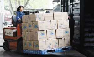 記者6日下午在貴陽東站貨場看到,一節裝有從深圳西麗站發來的50噸飲用水停留在2號站臺。從大方縣趕來的縣民政局局長劉宏偉辦完提貨手續后,立即組織人馬將這些水分別搬運到9輛武警貴州總隊后勤基地的大卡車上。