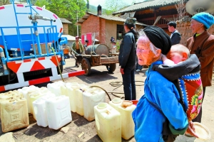 當(dāng)?shù)剜l(xiāng)干部說(shuō):“只需兩臺(tái)運(yùn)水車,我們就能挺過(guò)去,就能解決這幾個(gè)村500多人、上千只牲畜的用水。我們鄉(xiāng)干部把每月工資都捐出一半,買來(lái)塑料水桶,向無(wú)儲(chǔ)水、無(wú)運(yùn)水設(shè)備的農(nóng)戶發(fā)放。鄉(xiāng)政府前兩年投資建設(shè)學(xué)校和修公路負(fù)債累累,要想再購(gòu)置新的車輛,實(shí)在有心無(wú)力。”