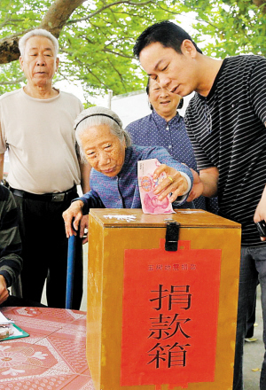 4月22日,在深圳“長壽村”南澳東涌社區,該社區的“五老”隊員及數十名老人相繼來到村里的大樹底下捐款。截至4月22日,南澳街道共募得了83000多元善款。? 深圳特區報記者 程海昆? 通訊員 李堅強 攝
