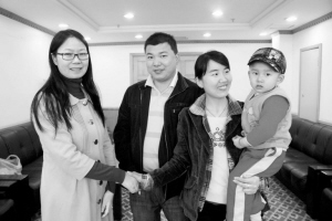 市關愛辦副主任徐斌(左一)向小彬彬一家送上祝福。