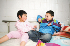 彭文樂正在進行彩超檢查。 樂樂和粵粵在市福利中心逗樂。 見到“哥哥” 小粵粵愣住了 “其實我們早就想來看小粵粵了,”彭高峰提著給小粵粵買的一大包點心走進福利中心大門,兒子彭文樂一路小跑,跟著福利中心工作人員走上電梯,來到6樓小粵粵的居室。平時,這個鐘點正是小粵粵的午睡時間,保育員劉梅香把她叫醒了。 小粵粵睜開眼睛,從床上坐起身來,看到眼前的彭文樂,一下子愣住了。就在她剛剛被解救回深圳,住進福利中心的時候,看見電視里彭文樂的鏡頭,她就對保育員阿姨說“那是我哥哥”,然后就哭了。20多天過去了,當“哥哥”真的出現在面前時,小粵粵睜大眼睛盯著他,一分多鐘沒有作聲。在彭高峰的提醒下,彭文樂從給“妹妹”帶來的點心中拿出一塊糖送進小粵粵嘴里。小粵粵一邊吃著糖,一邊緊緊盯著“哥哥”,還是不出聲。 “兄妹”倆玩樂開懷大笑 這時,彭文樂又拿起一小塊沙琪瑪,調皮地往上一拋,正好掉在小粵粵的頭上。小粵粵一下子爆發出清脆的笑聲,彭文樂也大笑起來?!靶置谩眰z這一笑就收不住了。彭文樂又把那一塊沙琪瑪掰了一小塊,往小粵粵嘴里塞。小粵粵調皮地咬了一口“哥哥”的手指頭,然后又大笑起來。“他們上次在一起還是從江蘇邳州回來前的那天晚上,”彭高峰說,“那天他們還不知道要分開,玩得很開心,回來之后,彭文樂雖然嘴上不說,但是我知道兒子也很掛念小粵粵?!?/p> 之后,彭文樂領著小粵粵來到了福利中心院子里的操場?!靶置谩眰z一起騎木馬,爬上爬下地鬧著玩,一直發出歡快的笑聲?!靶』浕泚淼竭@里以后,從來沒有這樣開心地笑過?!笔猩鐣@行闹魅翁茦s生說,2月10日入住福利中心以來,雖然小粵粵已經初步適應了環境,晚上也不再大哭大鬧,但是眼神里始終有一份拘謹和警惕,“任憑我們工作人員怎么逗她,她都不笑”。 今后會時常來看“妹妹” 歡樂的時間過得總是很快,一個小時轉眼就過去了。因為還有別的事情,下午3點左右,彭高峰帶著彭文樂離開了福利中心。因為擔心小粵粵看到“哥哥”走了難過,父子二人趁她不注意時悄悄溜走。 彭文樂和小粵粵剛被解救回來時,市婦聯的心理專家張小梨曾建議彭文樂去福利中心探望一下小粵粵,緩解小粵粵被解救之后幼小心靈受到的沖擊,幫助她渡過這個心理難關。彭高峰昨天對記者表示,當時他絕不是刻意不讓彭文樂來,而是因為他們一家要回一趟湖北老家,回到深圳后又一直在忙彭文樂上學的事情,直到昨天才有空閑。 “如果我有條件,我很愿意把小粵粵帶到家里去住?!迸砀叻逭f,他非常同情小粵粵,考慮到兒子和小粵粵曾經有過“兄妹”親情,他是樂意讓小粵粵跟他們一家共同生活的,但是他的經濟能力和住房條件都不允許。彭高峰表示,今后周末和假期,他會經常帶著兒子來福利中心看望小粵粵,也可以接小粵粵到家里去玩,讓孩子們的親情繼續下去。 是否送回養母家難決定 此前有媒體報道,因為小粵粵十分想念養母,考慮到在福利中心生活無法讓她享受到家庭的溫暖,福利中心有意將小粵粵送回江蘇邳州的養母家中。對此,唐榮生昨天對晶報記者說,小粵粵來到深圳將近一個月,仍然十分想念養母,并且親生父母仍然沒有線索。保育員劉梅香告訴記者,小粵粵雖然初步適應了福利中心的環境,但還是經常念叨“要媽媽”,有時甚至拿到糖果也要留著,說要“留給媽媽吃”。 是否因此就要把小粵粵送回養母家?唐榮生表示,此事目前尚難做出決定。首先,她的養母在彭文樂、小粵粵被拐案件中并不是完全無辜的,她至少對丈夫拐帶兒童的行為知情不報,負有一定的法律責任。同時,法律界對此也有爭議,徐州師范大學法政學院法律系教授張峰振接受采訪時就表示,雖然孩子在養母家可能會得到更好的成長,是符合情理的,但又有違背法理之嫌,情理與法理的糾結讓此事處于兩難境地。 唐榮生表示,深圳市社會福利中心將十分慎重地對待這件事情。近日,他將前往江蘇邳州,與當地相關部門協商,并到小粵粵養母家與其交流,綜合考慮各方因素決定小粵粵今后生活的安排;不過,不論小粵粵今后跟誰一起生活,她作為被解救出來的被拐兒童的身份不會改變,深圳市社會福利中心將是她今后的監護人;如果今后不與養母一起生活,福利中心將考慮把小粵粵寄養在深圳有經濟條件、有愛心的家庭。 □相關新聞 兒子回來太削瘦,發微博求助 中海醫院免費為彭文樂父子體檢 晶報訊(記者 王志明 通訊員 陳瑛/文、圖)“兒子吃飯少,睡覺也出汗,削瘦了不少,會不會身體有毛病?”剛尋回兒子的彭高峰,欣喜過后又愁上心頭,并發微博希望網友幫忙想想辦法。深圳中海醫院工作人員得知后,主動聯系彭文樂父子,免費為他們做了一次全身體檢。結果顯示父子倆身體健康還算理想。 據深圳中海醫院兒科主任醫師李春艷介紹,小文樂除了輕度缺鈣以外,其他方面的生長發育及健康狀況均較好,囑咐家人注意飲食營養均衡。另外,彭高峰雙腎有6*5mm大小的結石,目前無明顯病理體征,亦不需要手術治療。