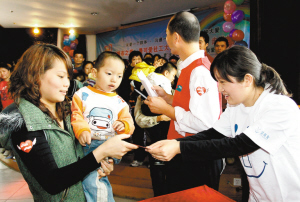 “謝謝你們,在我們最需要關懷的時候送來溫暖。”在領到300元關愛金后,特困腦癱患兒的媽媽彭女士動情地說。昨天上午,“城市之愛,最可愛社工大賞”評選活動走進市兒童醫院,攜手壹基金公益基金會等為108特困腦癱患兒家庭送上溫暖與祝福。