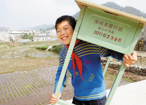 ????扛著心愛的小書桌,摩挲著珍貴的彩筆……這所偏遠的山村小學,因為小書桌和深圳愛心市民的到來,到處洋溢著孩子們的歡聲笑語。