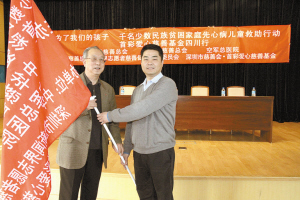 2月15日下午14:30,“為了我們的孩子——千名少數民族貧困家庭先心病兒童救助行動”首彩愛心慈善基金四川行活動在空軍總醫院舉行了簡短而隆重的啟動儀式暨新聞發布會。中華慈善總會張道誠副會長、空軍總醫院劉朝中副院長、中華慈善總會新聞慈善促進會盛春嵐主任、深圳市慈善會·首彩愛心慈善基金陸華秘書長、北京首彩飛霆葡萄酒有限公司郭勇總經理以及京華時報、中國廣播電視臺等媒體的記者出席了啟動儀式。伴隨著交旗儀式莊嚴的音樂,首彩葡萄酒北京分公司郭勇總經理從中華慈善總會張道誠副會長手中接過此次救助行動的旗幟,這也標志著首彩愛心慈善基金“心蓮心”先心病兒童救助項目四川涼山救助行動正式拉開序幕。