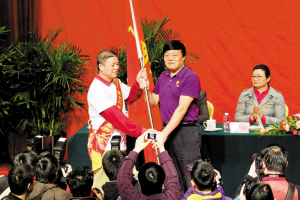 昨日,深圳商報(bào)總編輯姜東南向第十二批“募師支教”分往各地的團(tuán)隊(duì)授旗。