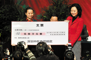 昨天,深圳中航集團(tuán)向“募師支教”行動捐款50萬元人民幣。迄今為止,該集團(tuán)已累計(jì)為“募師支教”行動捐款500多萬元。