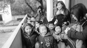 1日上午,4名支教志愿者來到井岡山沉塘小學,剛放下行李就去看望自己的學生。 深圳商報特派記者 羅凱燕 攝